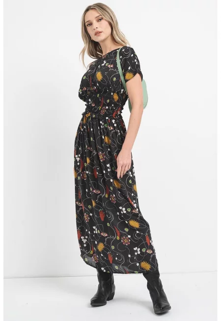 Миди рокля с модал - Черен/Тъмночервен/Мръснобял