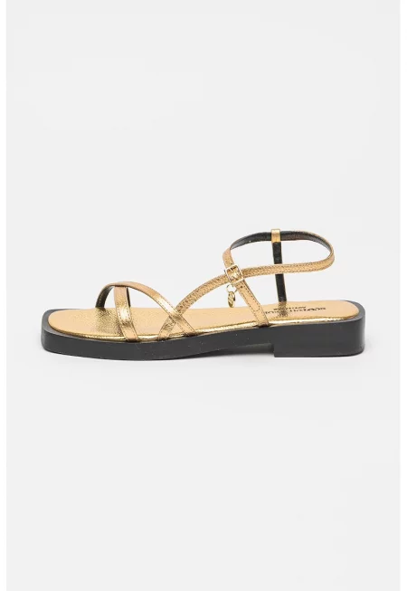 Кожени сандали с квадратен връх - Корал/Мандарина
