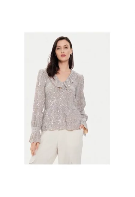 Дамска блуза - 303641344 - Полиестер - Сребрист - Сребрист