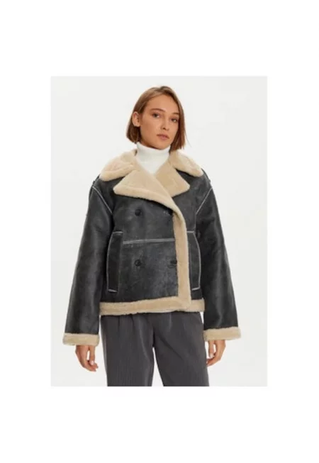 Дамско яке Кожено - Естествена - Сив - Сив