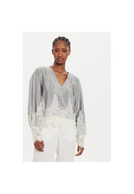 Дамска блуза - 304176722 - Полиестер - Сребрист - Сребрист