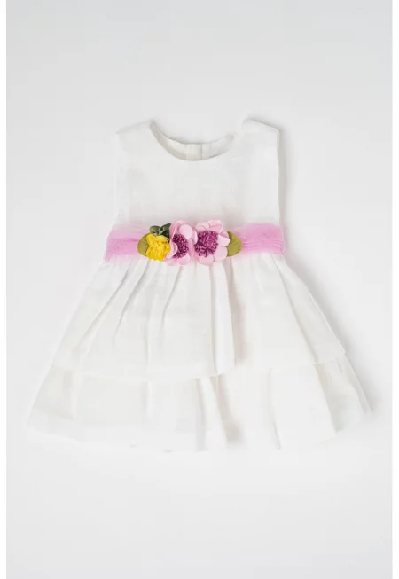 Рокля с лен Baby-Doll с флорален десен