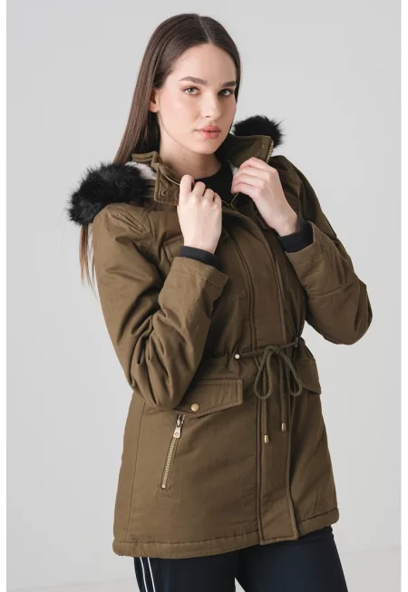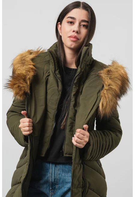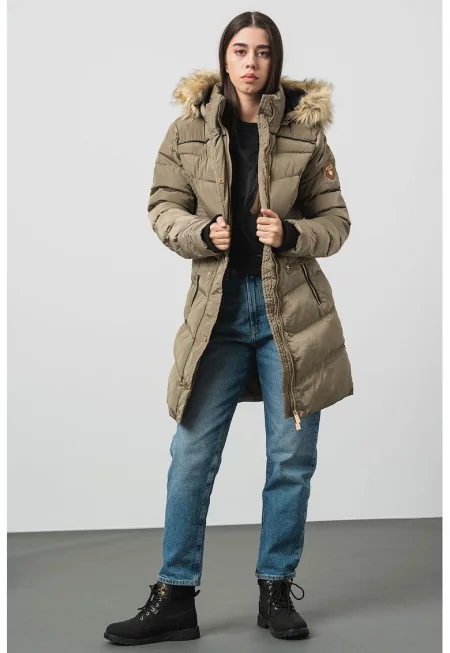 Дълга зимна парка Anadonna с качулка - Каки