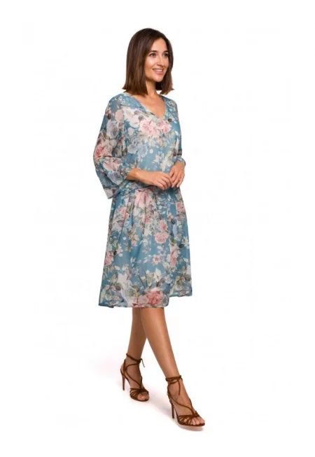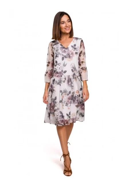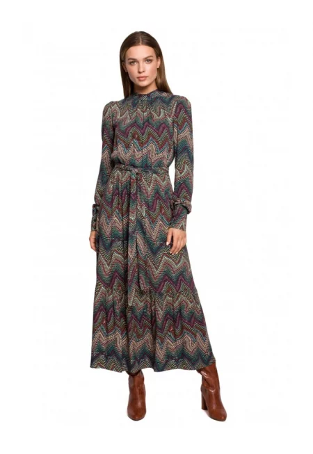 Дамска рокля - Стил - Вискоза - Многоцветна -