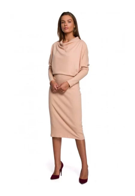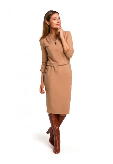 Плетена рокля с V-образно деколте - стил - памук - капучино -