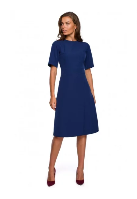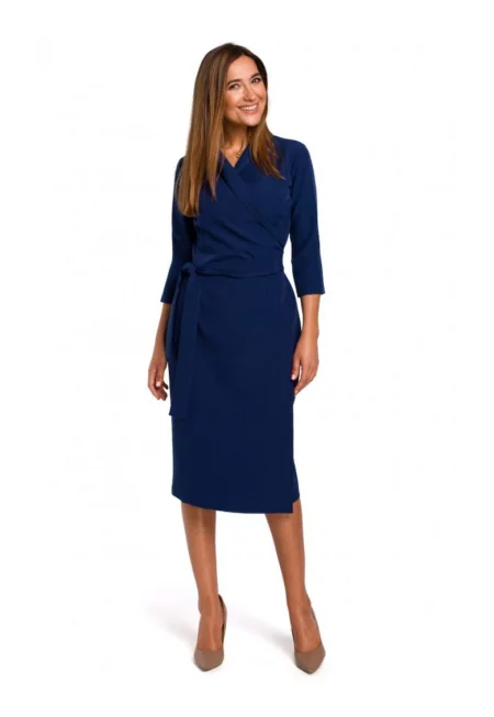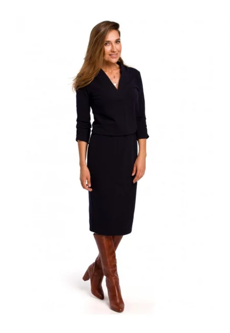 Рокля с V-образно деколте плетена - памук - тъмносин