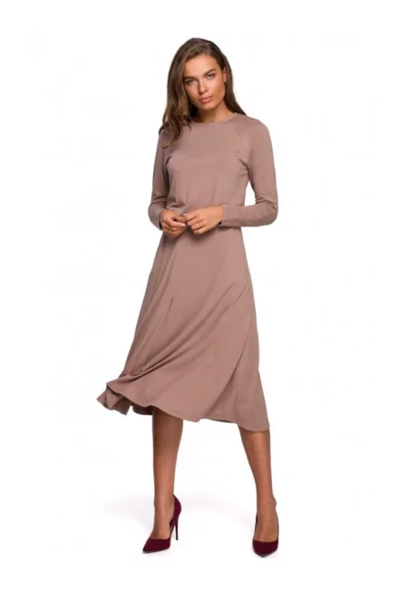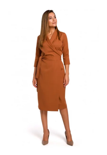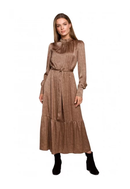 Дамска рокля - Стил - Полиестер - Кафява -