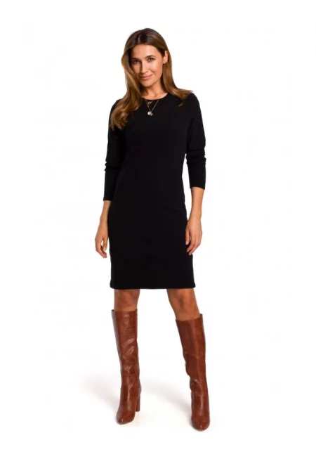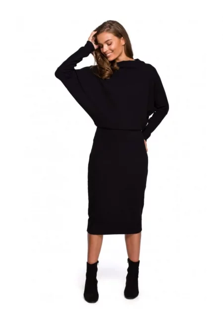 Пуловерна рокля - памук/еластан - черна