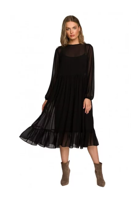 Ежедневна рокля - стил \ полиестер - черна