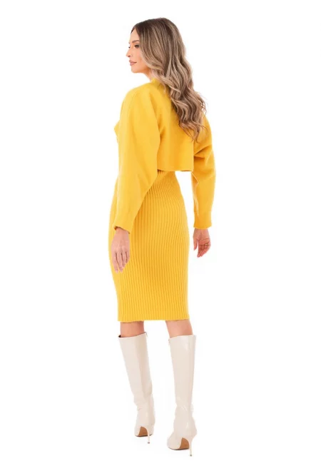 Прилепнала рокля и къса блуза - 2 части - Шафраново жълто