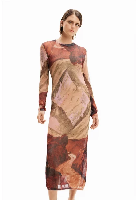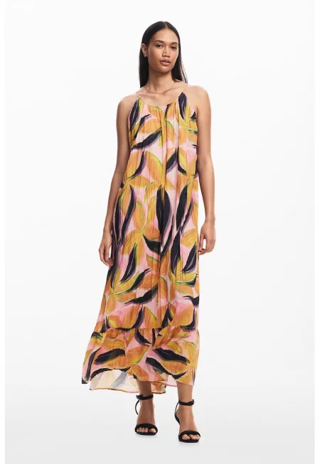 Дълга рокля с овално деколте - Многоцветен