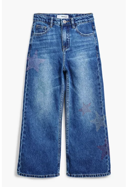 Дънки с широк крачол и захабен ефект - Светлосин