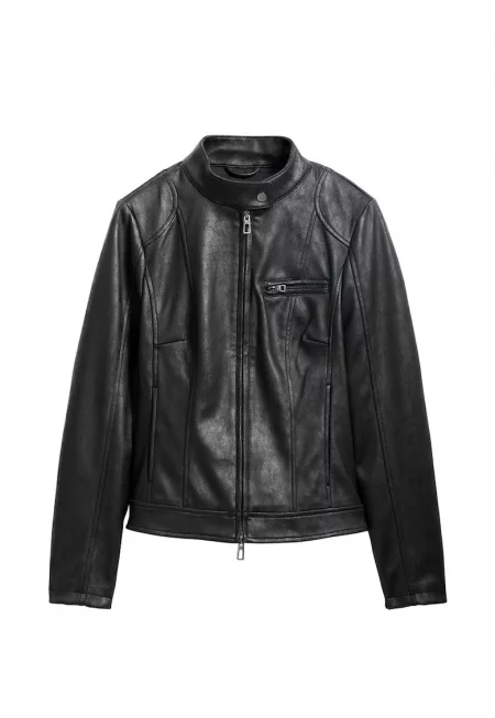 Едноцветно яке със скосени джобове - Черен