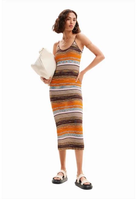 Раирана рокля - Кафяв/Изгорен портокал