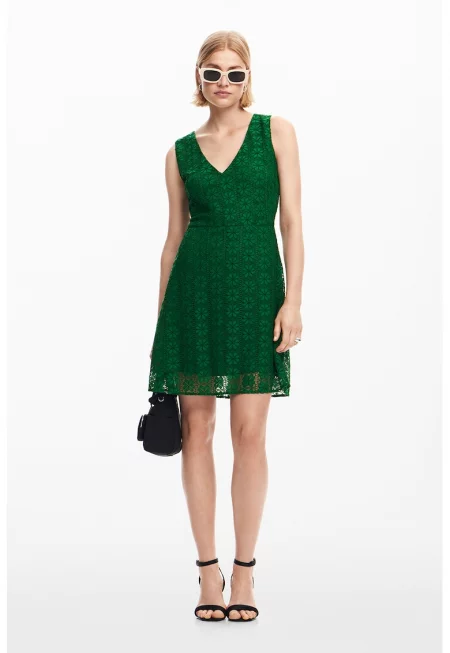 Флорална къса рокля с флорална дантела - Зелен