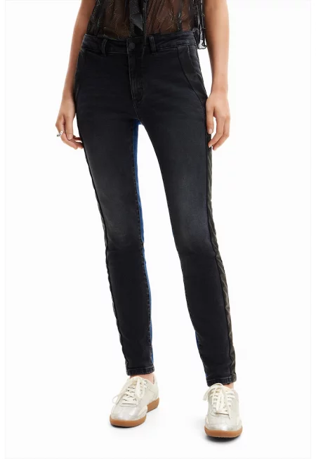Дънки слим с контрасти встрани - Син