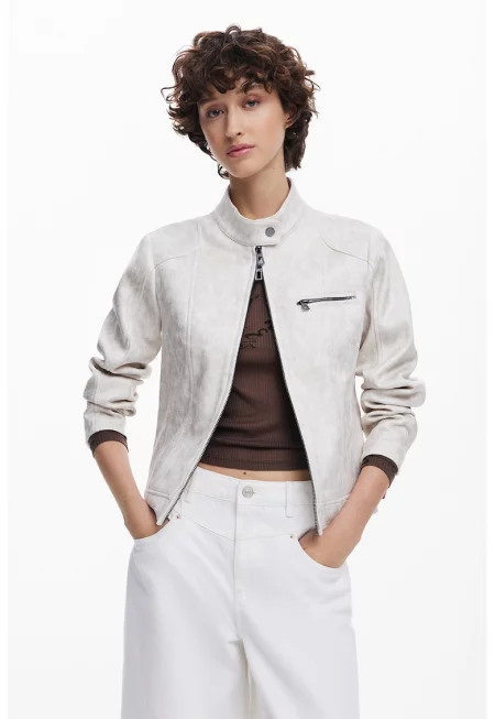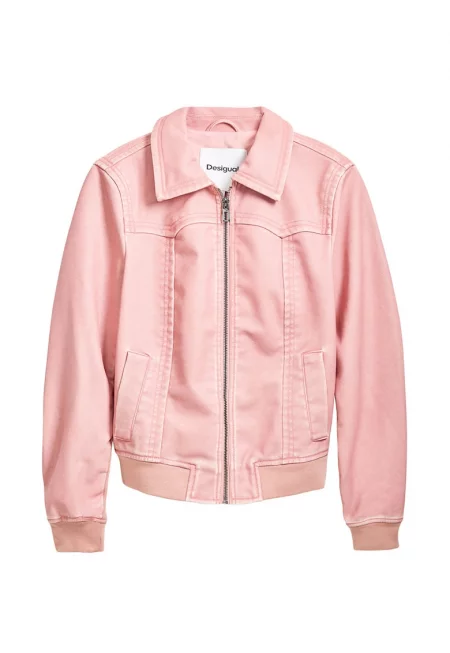 Яке от еко кожа със скосени джобове - Пастелнорозов