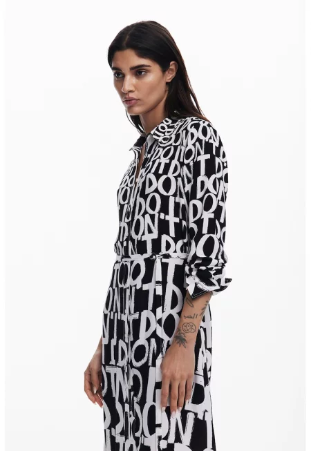 Дълга рокля-риза с десен - Бял/Черен