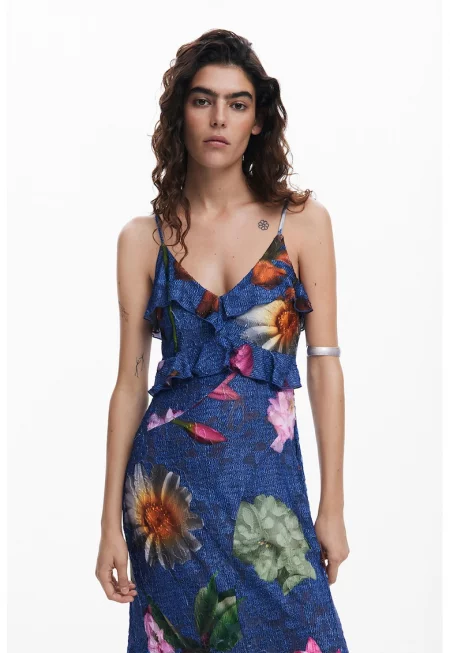 Флорална рокля с асиметричен подгъв - Многоцветен