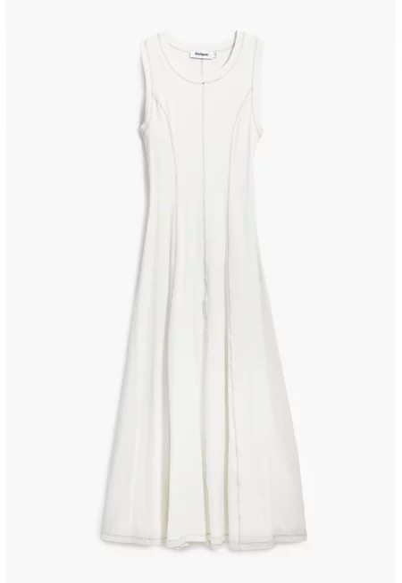 Разкроена рокля с контрастни шевове - Бял
