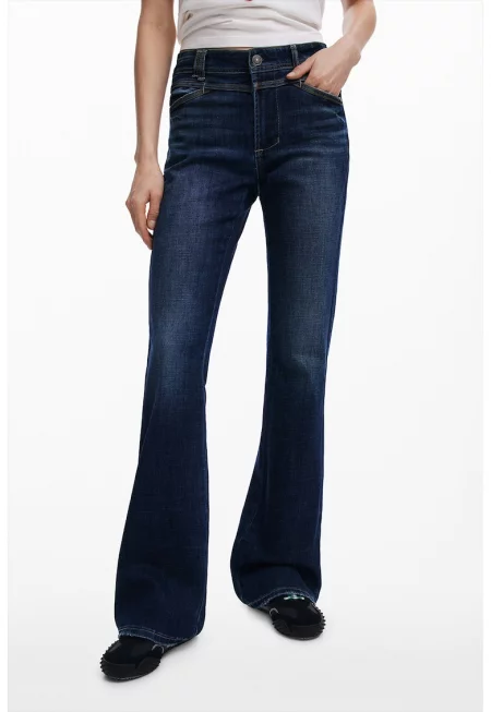 Дънки слим със захабен ефект - Тъмносин