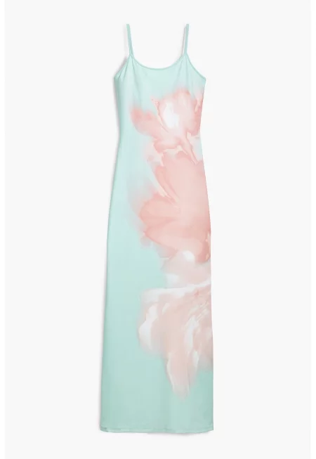 Еластична рокля - Розова сьомга/Ментово зелено