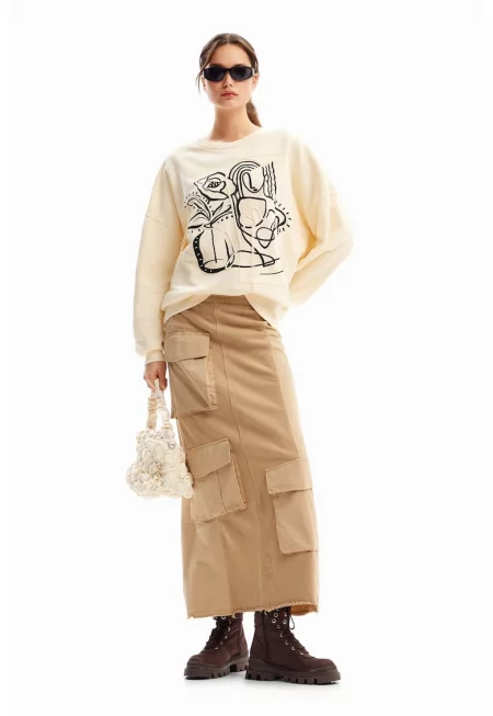 Суитшърт с фигурален принт - Черен/Мръснобял