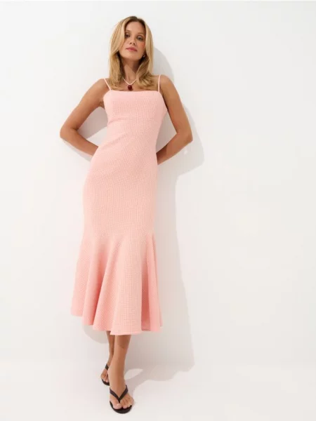 Mohito - Карирана миди рокля - оранжево
