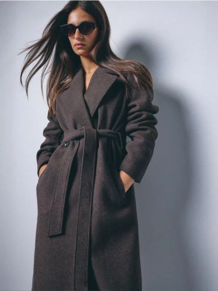 Mohito - Яке с колан - тъмно кафяво