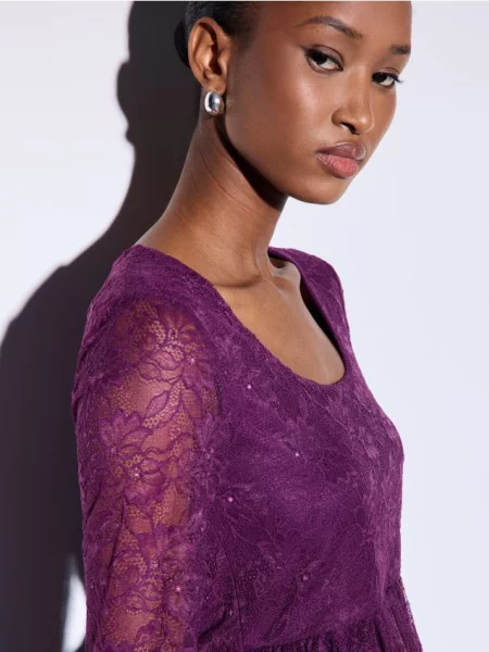 Mohito - Лека блуза с дантела - тъмно лилаво