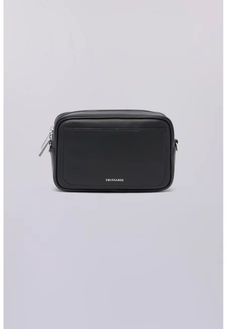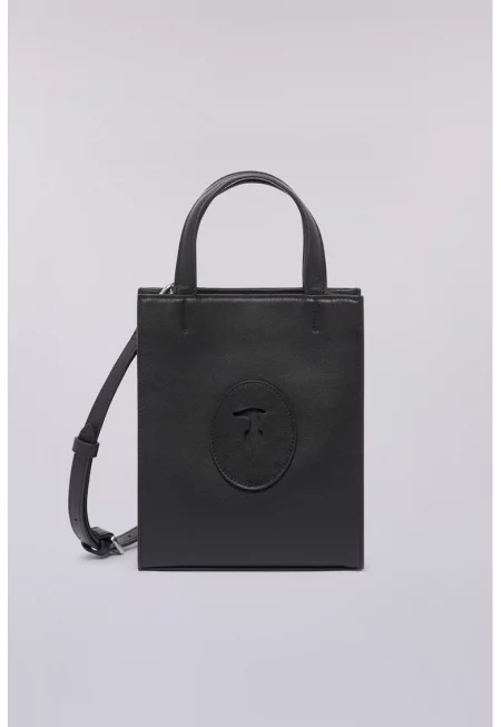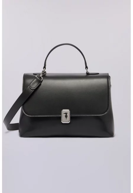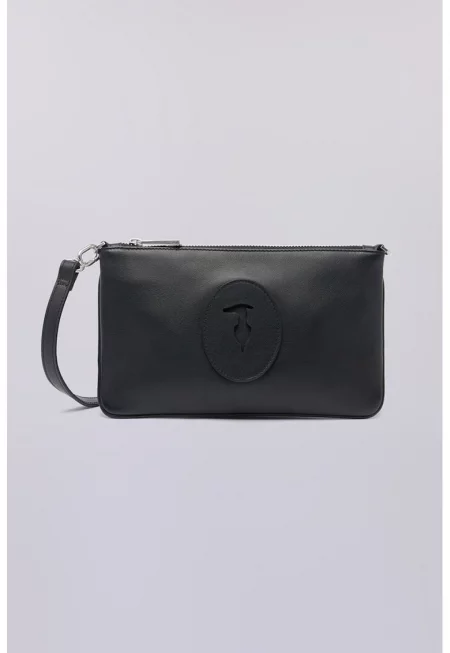 Кожена чанта с лого - Черен