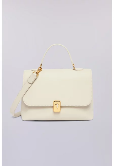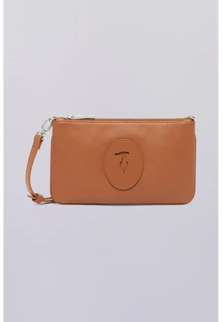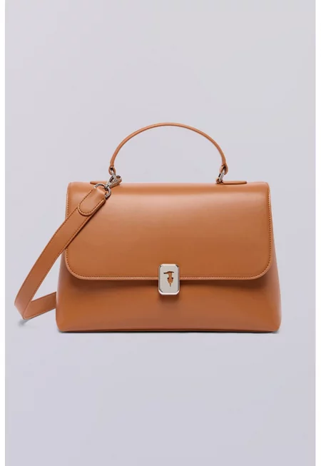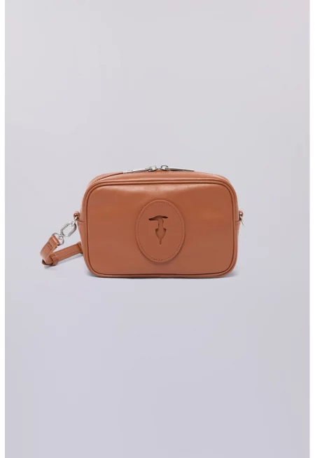 Кожена чанта с лого - Карамел