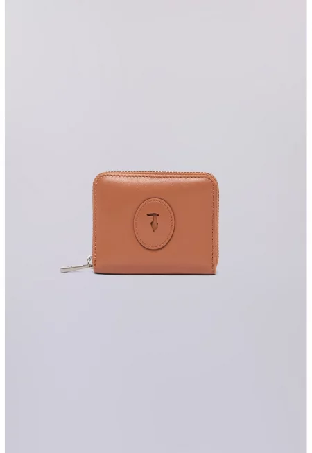 Кожено портмоне с цип - Карамел