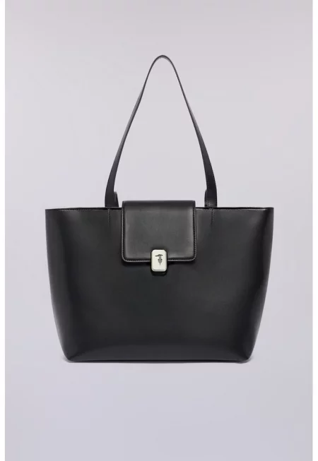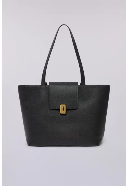 Кожена шопинг чанта - Черен