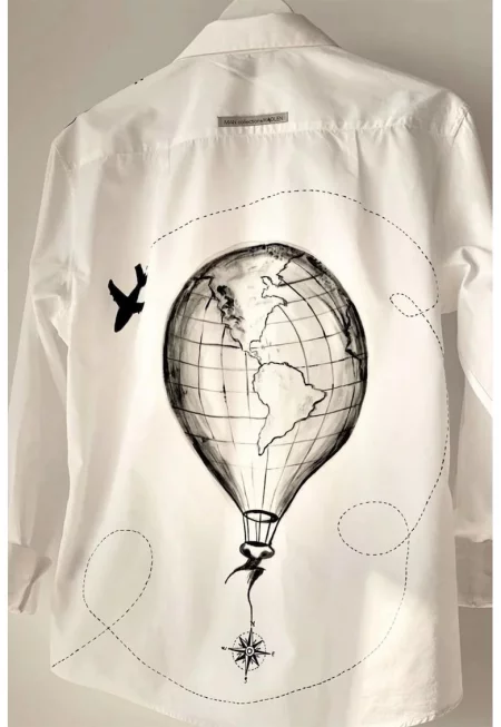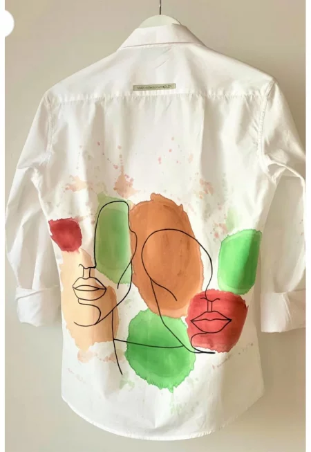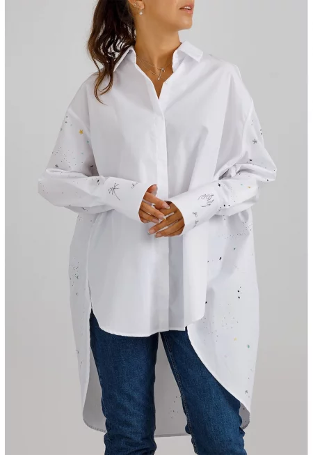 Ръчно рисувана риза с асиметричен подгъв - Черен/Бял