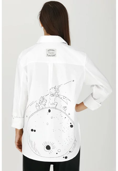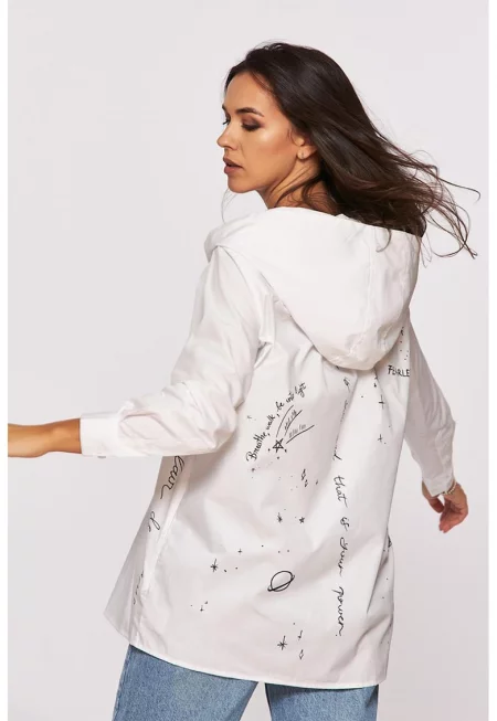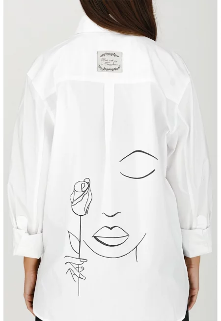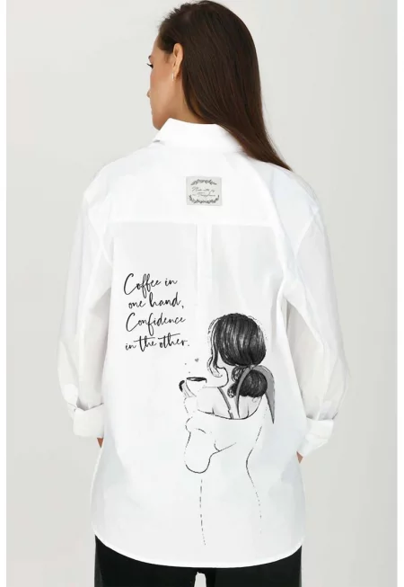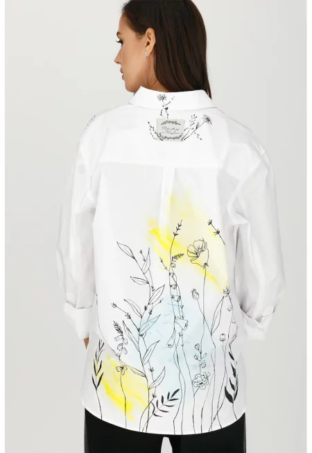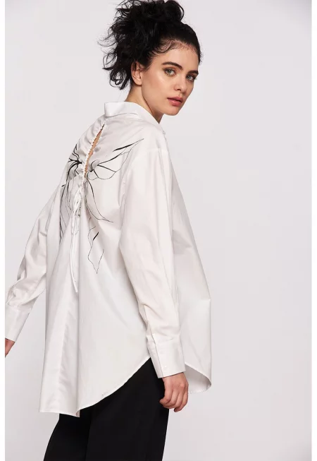 Риза от памук с шарка на гърба - Бял/Зелен/Кафяв