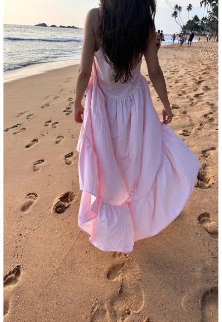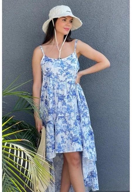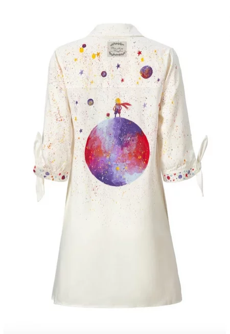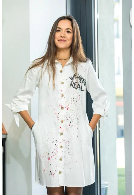 Рокля-риза с джобове и принт на гърба - Бял/Виолетов/Розово