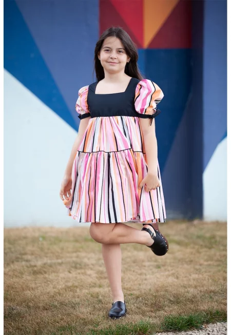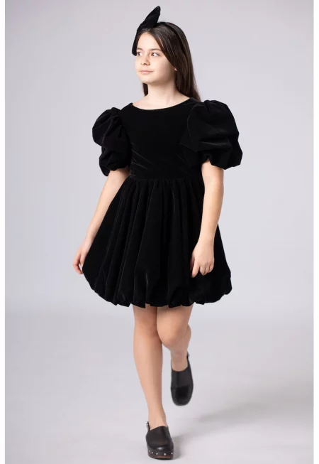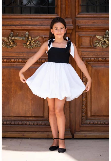 Рокля с подгъв тип балон и панделки - Черен/Бял