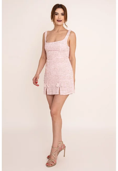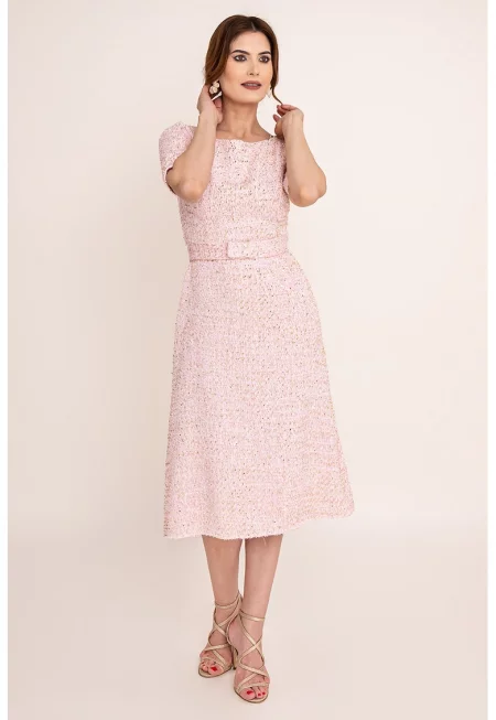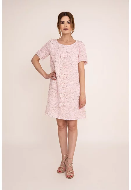 Рокля Anemona от туид - Бял/Светлорозов