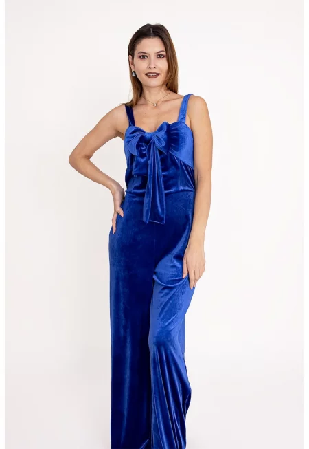 Кадифен гащеризон Rush с панделка - Син