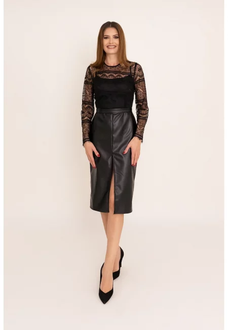 Рокля Myra с дизайн 2 в 1 и дантела - Черен