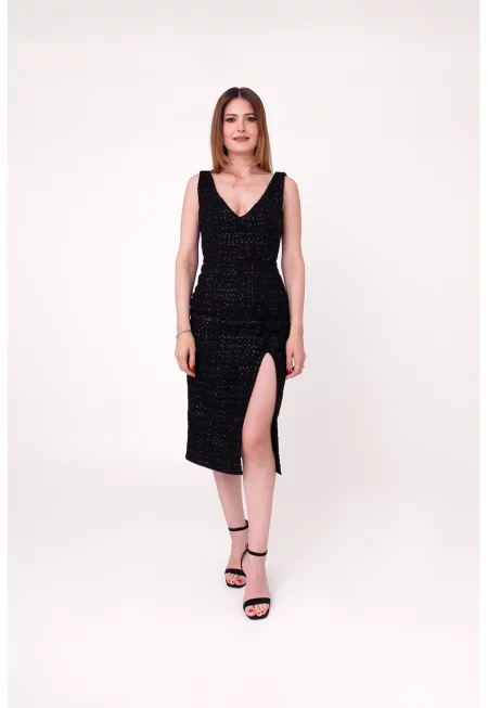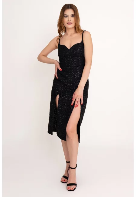 Втлена рокля Rosemary с фронтална цепка - Черен