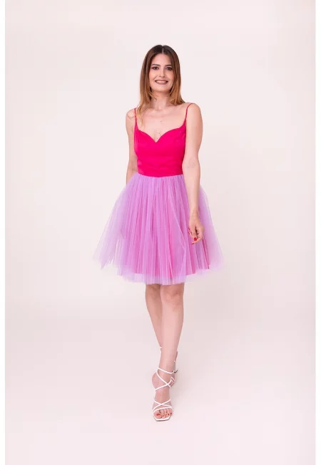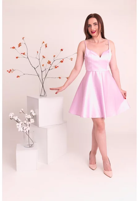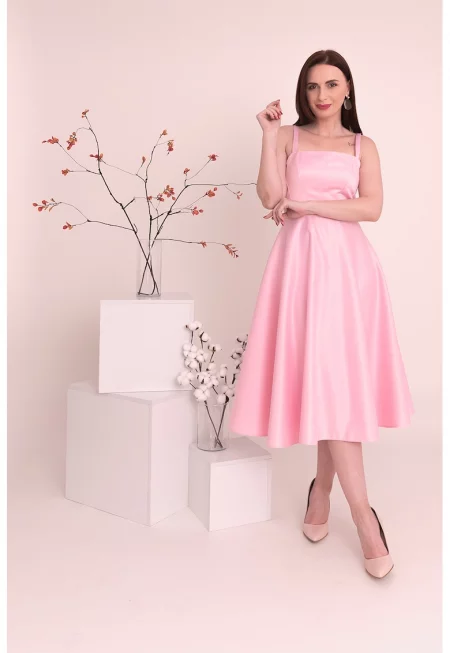 Сатинирана рокля Sofia - Пастелнорозов