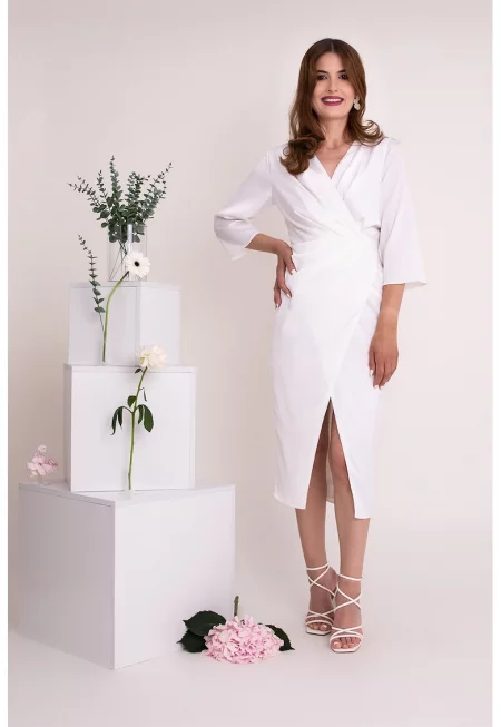Миди рокля Nefeli с 3/4 ръкави - Бял