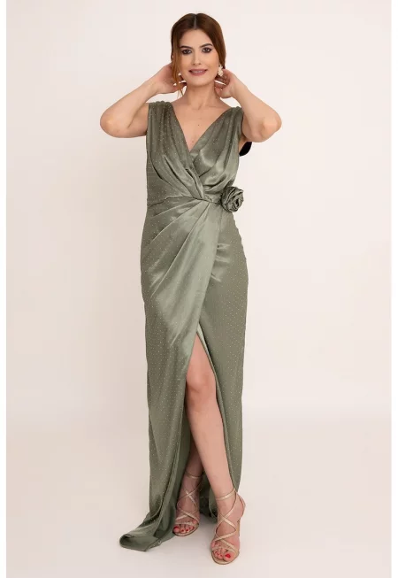Дълга сатенена рокля Lilith - Зелени аспержи