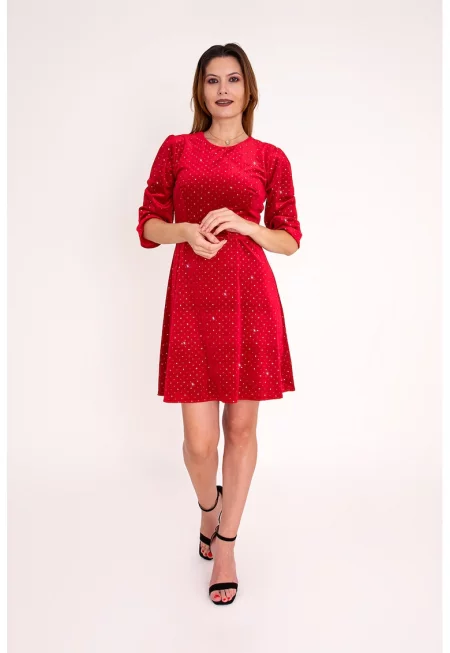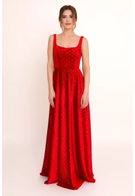 Разкроена рокля Mireille с декоративни камъни - Червен
