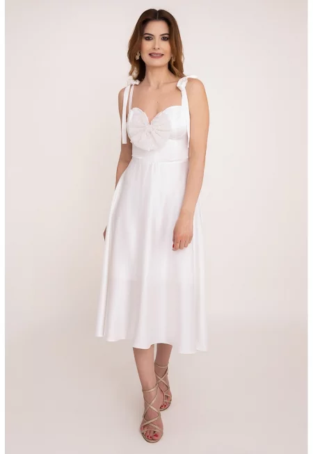 Миди рокля Pearl със сърцевидно деколте - Бял