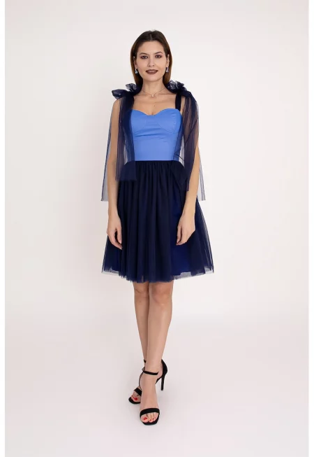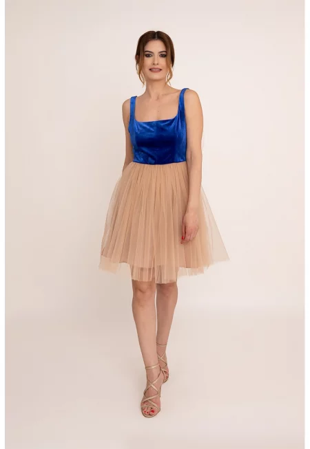 Къса рокля Valeria с панделка - Кралско Синьо/Бежов