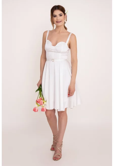Разкроена рокля с колан Moon - Бял