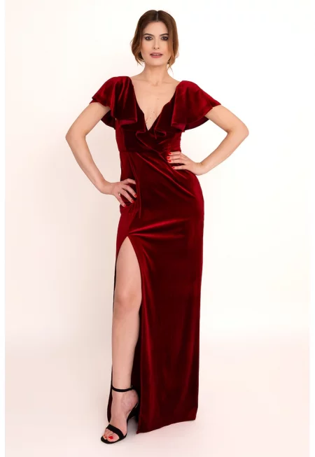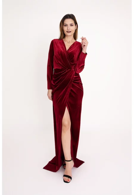 Кадифена рокля Seraphina с цепка встрани - Тъмночервен
